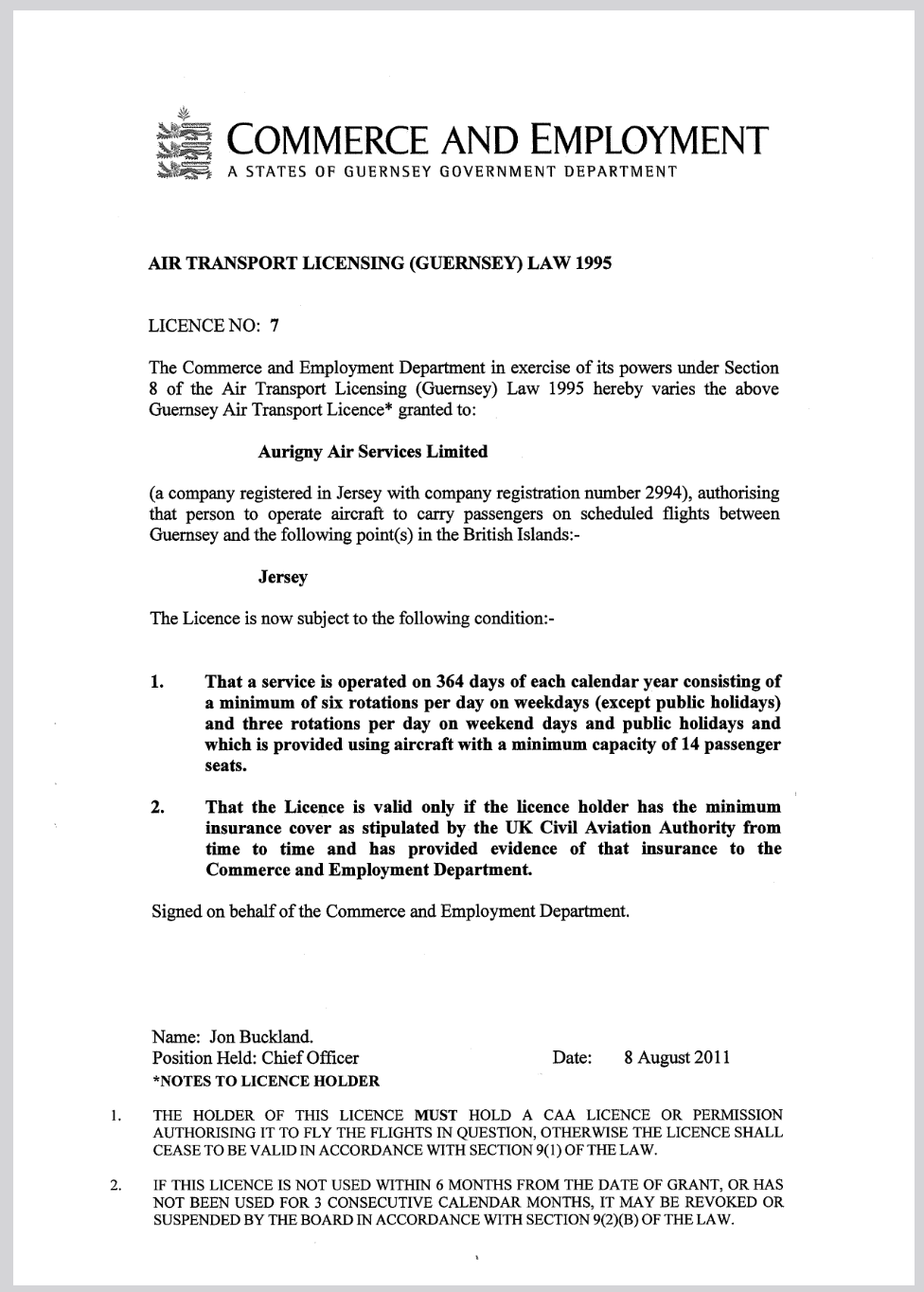 - The disruption to the Channel Islands’ air connectivity following the sudden collapse of Blue Islands on Friday, which led to the Committee determining that greater resilience is required on the route, which licensing can provide;