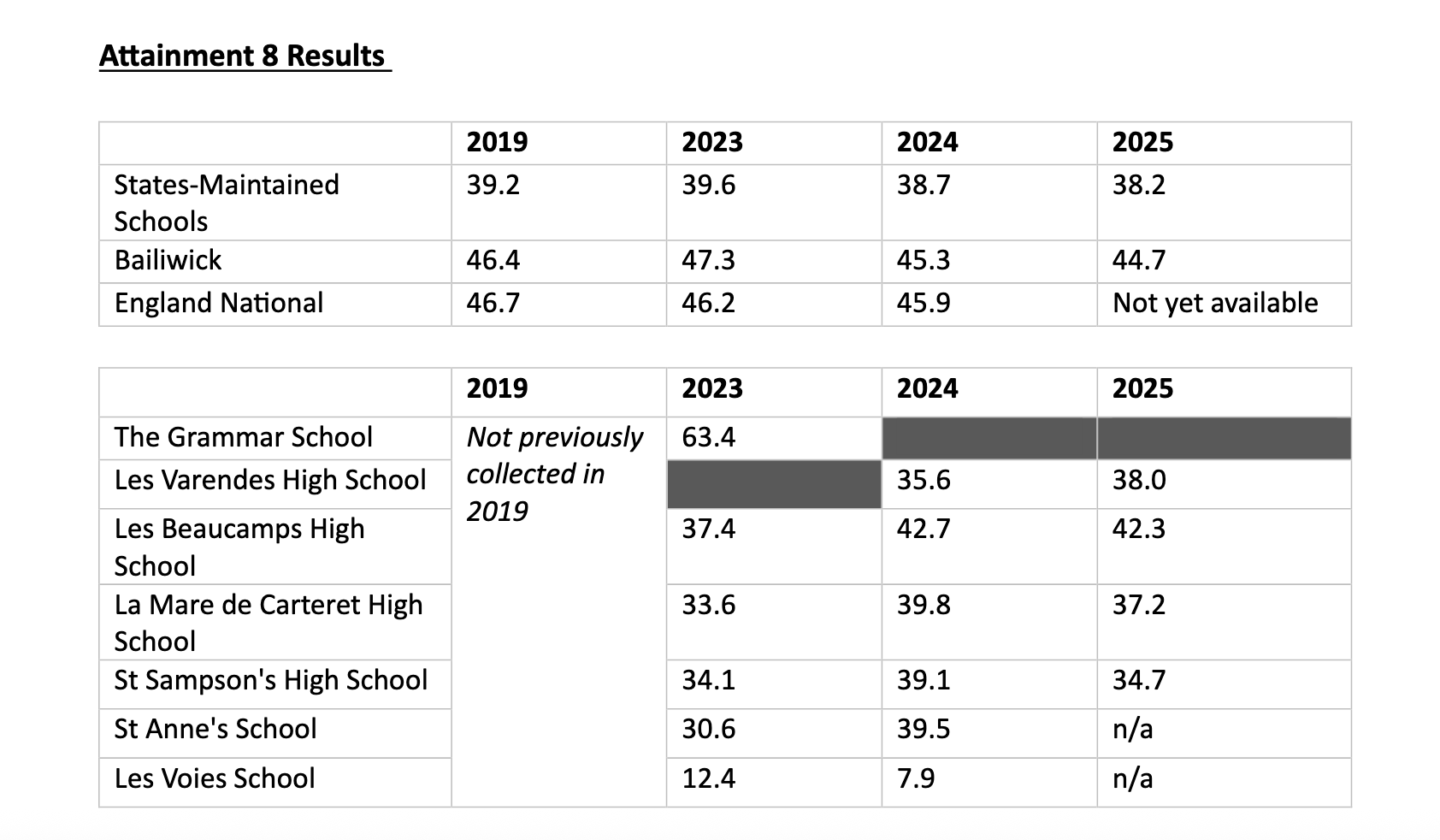 The Bailiwick’s Attainment 8 results have slipped from previous years.
