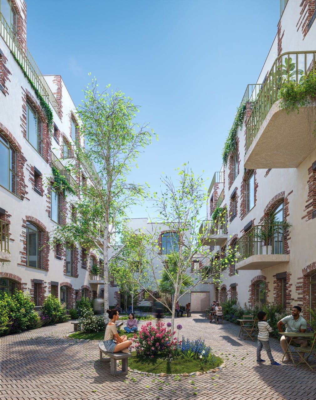 The homes will be in two six-storey apartment buildings and some courtyard houses, arranged around a central shared space.