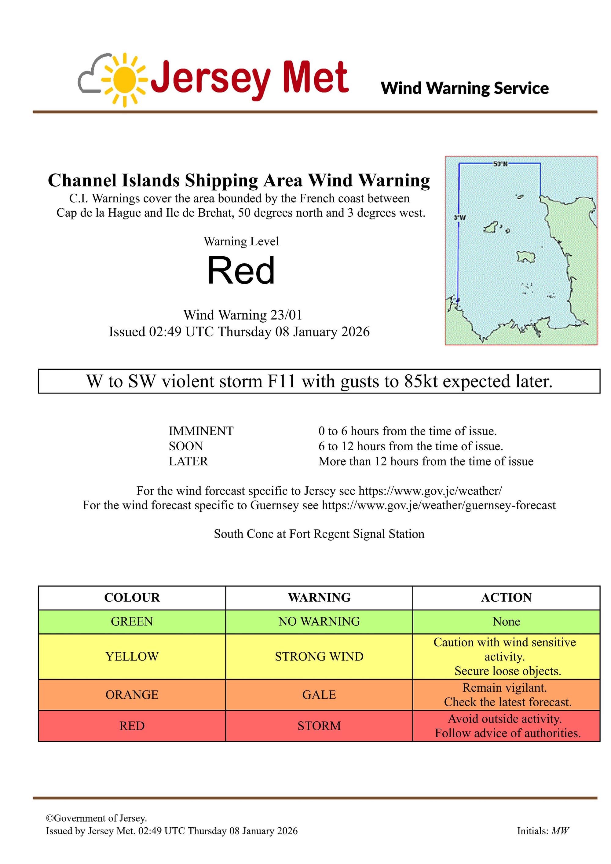 “Islanders with boats are asked to check and secure their moorings ahead of the storm. It is likely that bus services will finish early on Thursday and be suspended until wind speeds drop. Kerbside recycling collection could also be cancelled.”