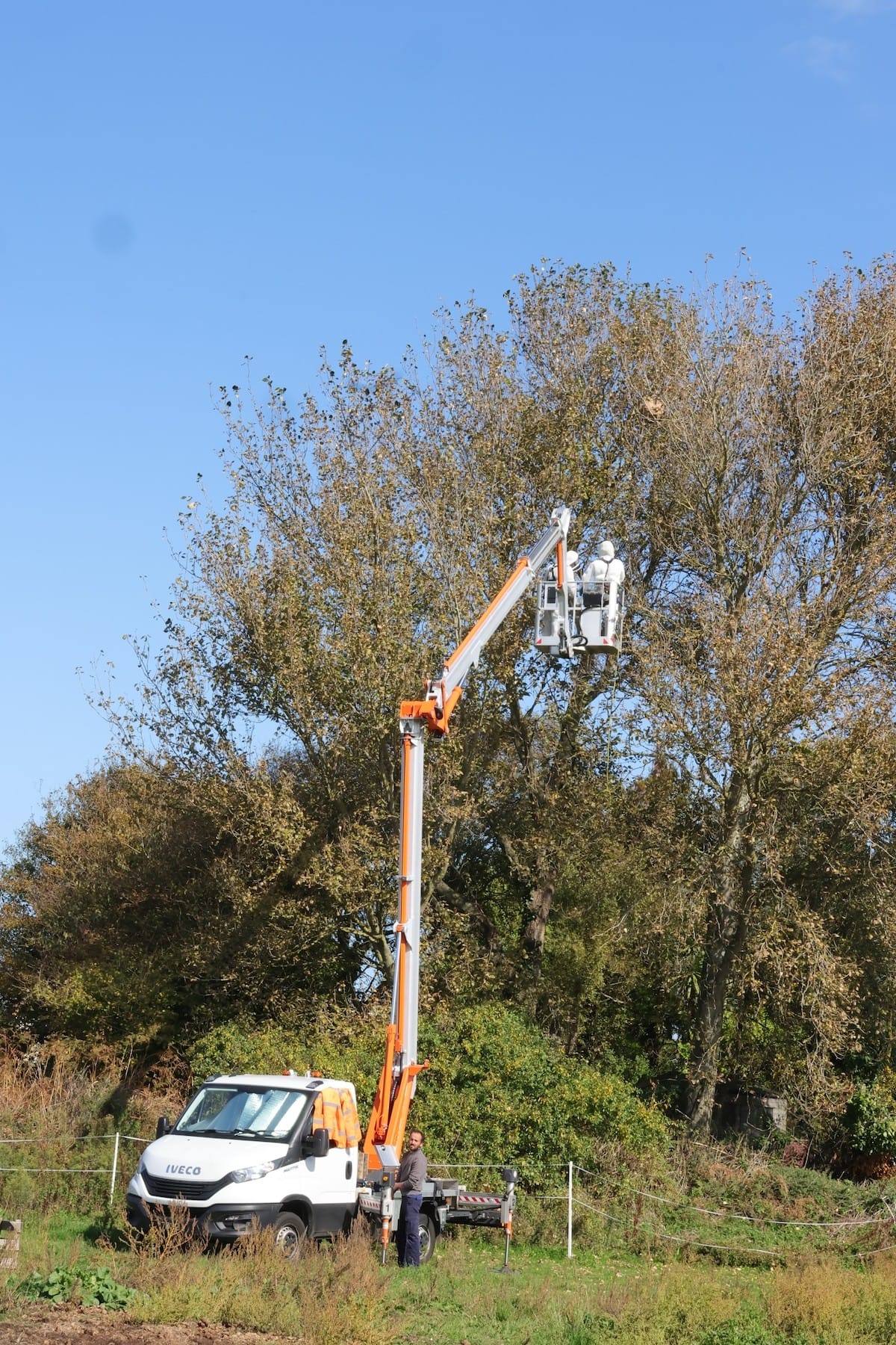 The team thanked the landowner for their assistance in relocating horses and ponies in the vicinity and for allowing the use of a cherry picker to access the nest in the crown of a large poplar tree.
