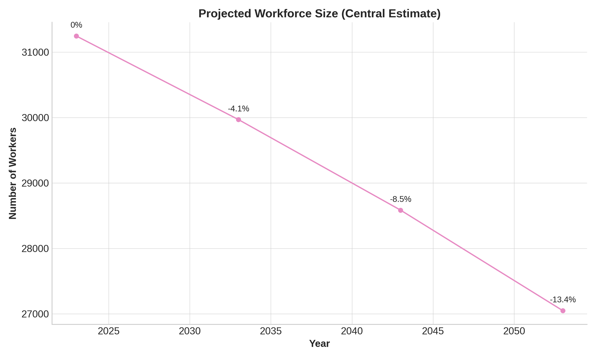 Beyond the health crisis lies a demographic one. Guernsey's working-age population is in decline. Projections show a 4.1% reduction by 2033, and 8.5% by 2043 under current trends. Meanwhile, those aged over the States pension age are expected to grow rapidly—particularly the 85+ cohort, which will double by 2049.